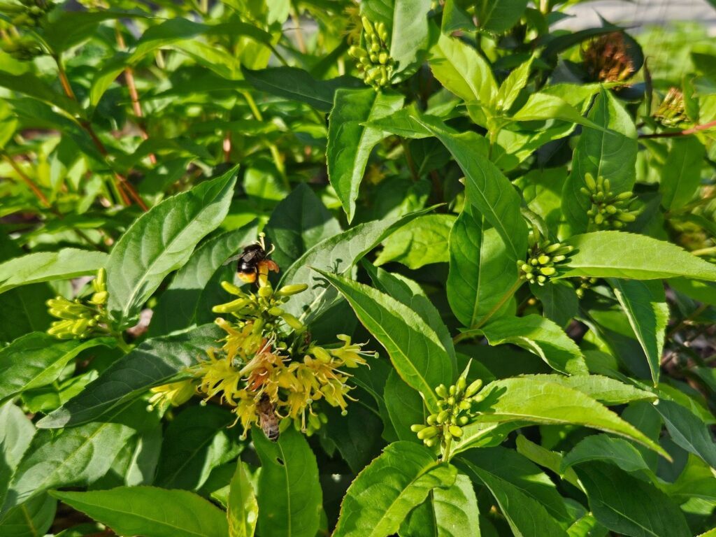 Istutusalueiden kasvilajisto valittiin tukemaan monipuolista ekologista toimintaa. Kuivuutta sietävät kasvit sijoitettiin korkeammille harjanteille, ja kosteutta suosivat lajit veden kulkureittien ja viivytysalueiden yhteyteen. Lehtipuut, havut, pensaat ja perennat muodostavat kerroksellisen ja elävän kasvillisuuden, joka tarjoaa ravintoa ja elinympäristöjä pölyttäjille ja muulle kaupunkiluonnolle. Tämä ei ainoastaan luo viihtyisää ympäristöä, vaan tukee luonnon monimuotoisuutta myös rakennetussa ympäristössä. Lajeja on runsaasti ja ne ovat myös pörriäisiä kutsuvia.