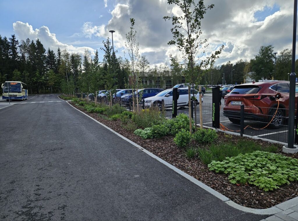 Pysäköintialueille ja kulkuväylien yhteyteen suunniteltiin vettä viivyttäviä istutus- ja biosuodatusalueita, jotka toimivat tärkeänä osana hulevesien hallintaa. Sen sijaan, että sadevesi ohjattaisiin nopeasti viemäriverkostoon, vesi ohjataan imeytymään maaperään ja haihtumaan luonnollisesti. Tällainen ratkaisu vähentää rankkasateiden hetkellistä kuormitusta, ehkäisee tulvariskejä ja parantaa veden laatua biologisen suodatuksen avulla.