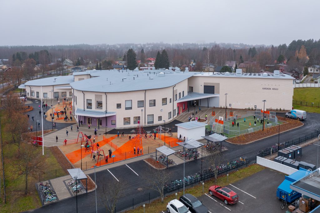 Carmenia vastasi Karsikon koulun pihan suunnittelusta. Lähtötietoina suunnittelulle oli se, että tontilta oli purettu vanha huonokuntoinen kivikoulu. Sekä se, että tontilla on ollut urheilukenttä. Tämä uudistettiin tekonurmipintaiseksi. Suunnittelu aloitettiin pihan toimintojen ja tilojen sijoittumisen suunnittelulla käsin piirtämällä. Kuten missä tahansa muussakin suunnitteluprosessissa, otimme huomioon käyttäjien toiveet ja suunnitelmia käytiin läpi yhdessä heidän kanssaan.